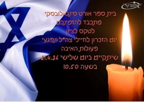 ביום שלישי (21.4.26): טקס יום הזיכרון לחללי צה״ל ולנפגעי פעולות האיבה בקרית החינוך אורט סינגאלובסקי בתל אביב