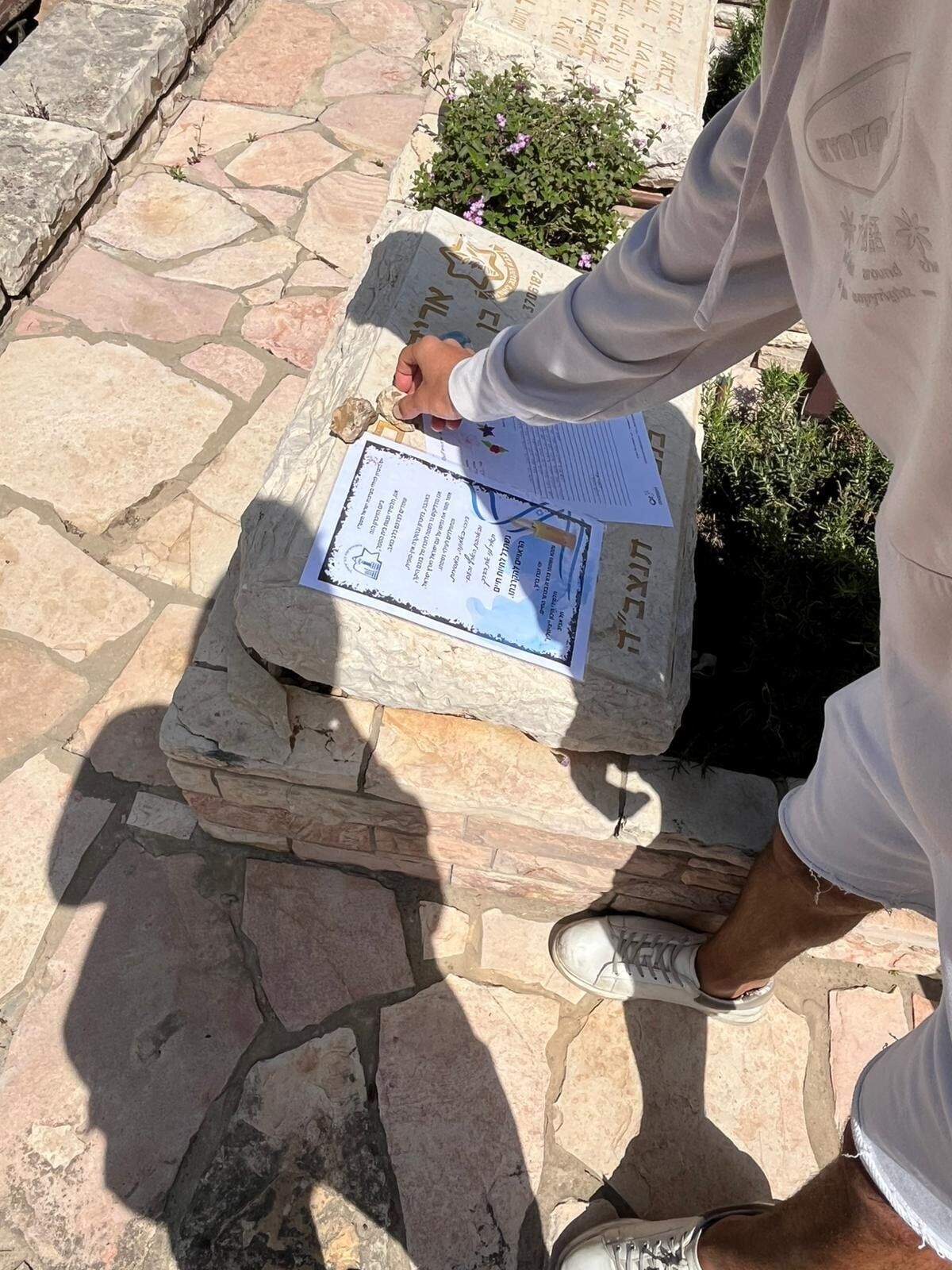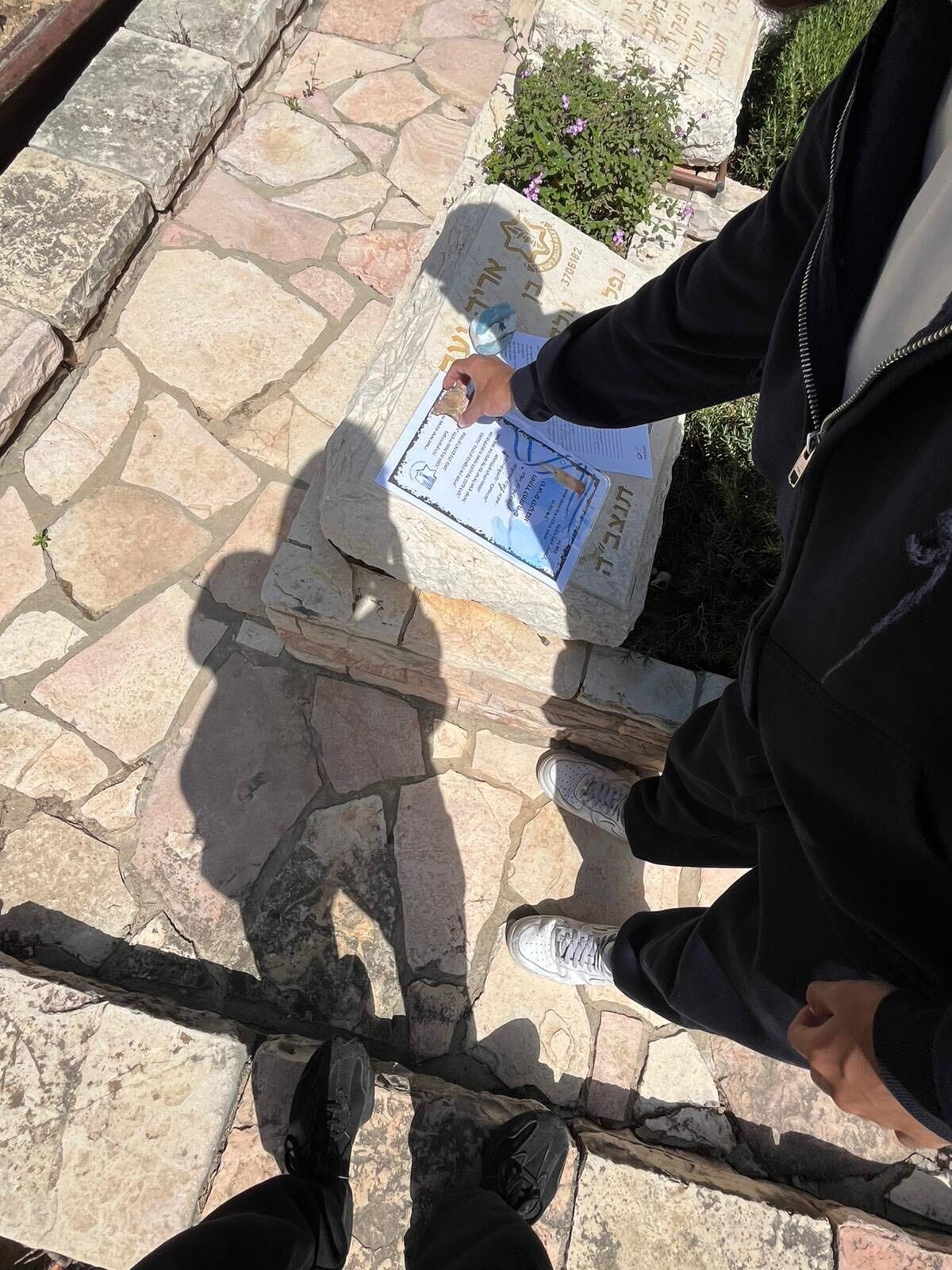 במהלך הביקורים בבתי העלמין, הונחו מעל כל מצבה של בוגר בית הספר אבן ופתק. מבית הספר נמסר כי האבן הונחה כסימן לנוכחות התלמידים במקום, ולכך שזיכרון הנופלים יצוק בלבם כסלע. הפתקים, שנכתבו מליבם של בני דור העתיד אל דור הגיבורים, כללו מילות תודה, געגוע והבטחה להמשיך בדרכם של הנופלים.