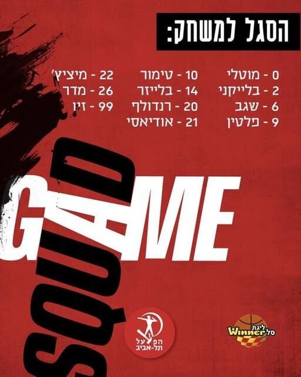 לקראת משחק הכדורסל שייערך היום (חמישי) בשעה 16:00 מול קבוצת גליל עליון, מועדון הכדורסל של הפועל תל אביב פרסם את סגל השחקנים הרשמי שייקח חלק בהתמודדות.