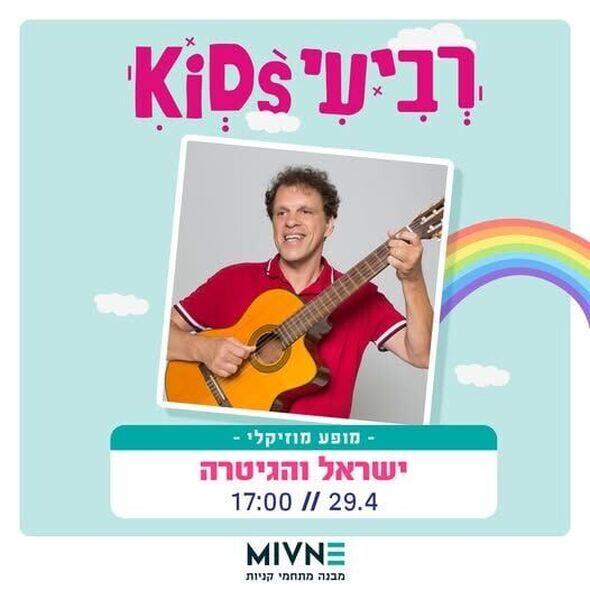 ביום רביעי, 29 באפריל, יתקיים מופע מוזיקלי חווייתי לילדים בקניון מבנה מגדלי תל אביב. במסגרת אירועי "רביעי KiDs" שמציע המתחם, יתארח האמן "ישראל והגיטרה" למופע מוזיקלי.