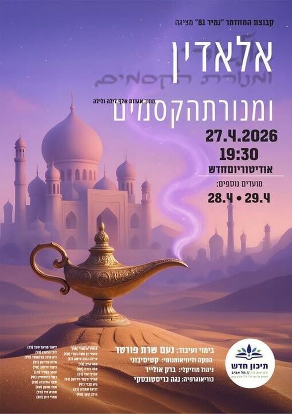 תיכון חדש בתל אביב נערך להעלאת הפקה תיאטרונית מקומית. קבוצת המחזמר של בית הספר, "תמיר 81", תציג בשבוע הבא את המחזמר "אלאדין ומנורת הקסמים", המבוסס על אגדות אלף לילה ולילה.