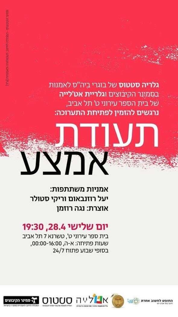 בית הספר עירוני ט' בתל אביב יארח את פתיחת התערוכה ״תעודת אמצע״ של האמניות יעל רוזנבאום וריקי סטולר. אירוע הפתיחה יתקיים ביום שלישי, ה-28 באפריל 2026, בשעה 19:30, במתחם בית הספר הממוקם ברחוב טשרנא 7 בעיר.
