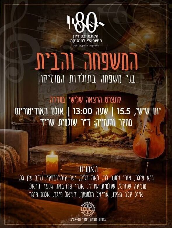 "המשפחה והבית": קונצרט הרצאה מיוחד בקונסרבטוריון הישראלי למוסיקה בתל אביב ב-15.5