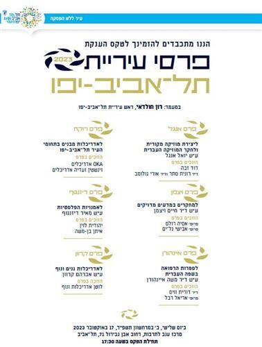 טקס הענקת פרסי עיריית תל אביב לשנת 2023: פרסים בתחומי מוזיקה, אמנות, מדע, אדריכלות וספרות רפואה