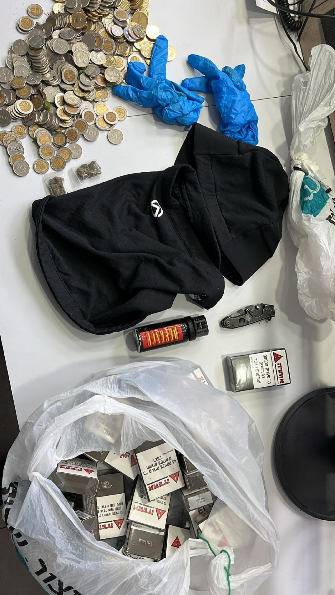 שוטרי תחנת שכונות בתל אביב עצרו חשוד בשני אירועי שוד שהתרחשו הלילה. הדיווח הראשון התקבל על שוד בחנות של רשת מרכולים ברחוב נחלת יצחק. במהלך איסוף הממצאים והסריקות הנרחבות, התקבל דיווח נוסף על שוד בחנות שהתרחש ברחוב יצחק שדה. עם קבלת תאור החשוד, התברר כי מדובר באותו חשוד שביצע את השוד הקודם. פעולות איתור מהירות של השוטרים בשטח, תוך סגירת נתיבי הבריחה, הובילו לאיתור החשוד כאשר הוא מנסה להימלט מהשוטרים על גבי קורקינט חשמלי. במהלך המרדף, השליך החשוד את הרכוש שגנב. החשוד, תושב תל אביב בן 19, נעצר והובא לחקירה בתחנת שכונות. בחיפוש שבוצע על החשוד, נתפסו מעל 2,000 ש\"ח במטבעות ו31 קופסאות סיגריות, כמו כן נתפסו מסכה, סכין, תרסיס פלפל וכפפות.