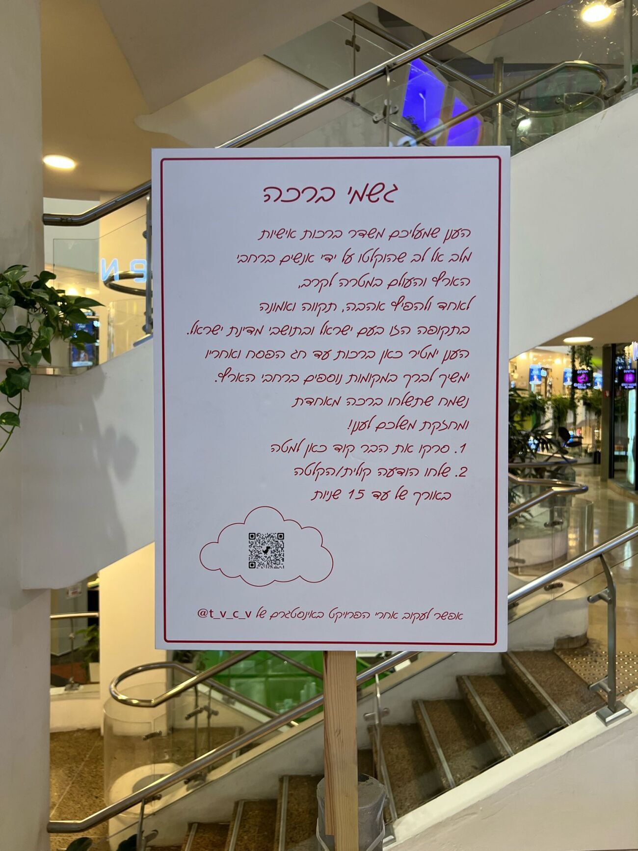 הושק פרויקט "גשמי ברכה" בדיזנגוף סנטר, תל אביב: ענן מקרין ברכות ועמדה עם QR קוד להקלטת מסרים מהקהל