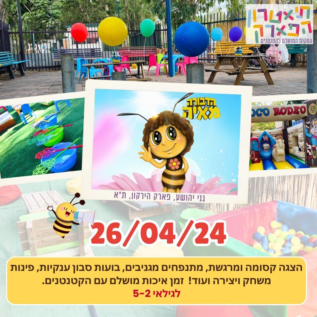 תיאטרון הפארק בתל אביב מציע חוויה ייחודית לקטנטנים במשך ארבעה ימים. החוויה כוללת הצגה ושעת סיפור בימתית עם הדמויות האהובות על הילדים, ומגוון פעילויות במתחם התיאטרון: מתנפחים מגניבים, בועות סבון ענקיות, בריכת כדורים כיפית, פינות יצירה מהספרים, פינות משחק חווייתיות ועוד. לרכישת כרטיסים אחרונים, ניתן לבקר באתר הכרטיסים.