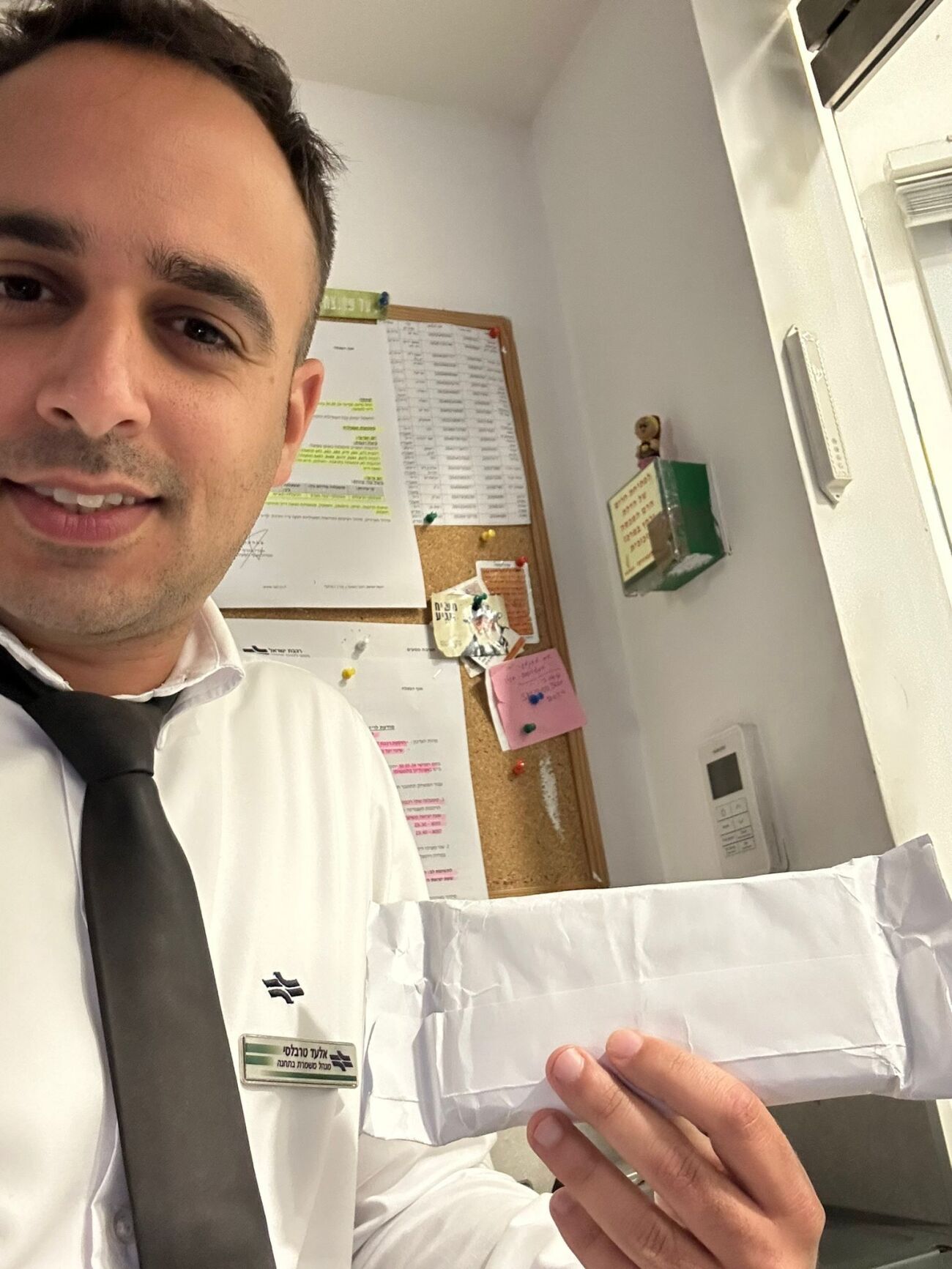 ביום רביעי בחצות הלילה, הגיע נוסע אל תחנת הרכבת ת"א סבידור מרכז בטענה ששכח מעטפה ברכבת עם סכום של לא פחות מ-22 אלף שקלים. אלעד טרבלסי, מנהל התחנה, הבין שמדובר ברכבת שסיימה זה עתה את נסיעתה וצוותה נמצא בהכנות לקראת נסיעה חדשה. אלעד הסב את תשומת לבו של פקח הרכבת ברוך הוס, שבדיוק החל בבדיקת והפעלת הרכבת לפני הגעת הנוסעים. ברוך החל מיד בסריקת הרכבת לאורכה ולרוחבה עד שאיתר את האבדה היקרה.