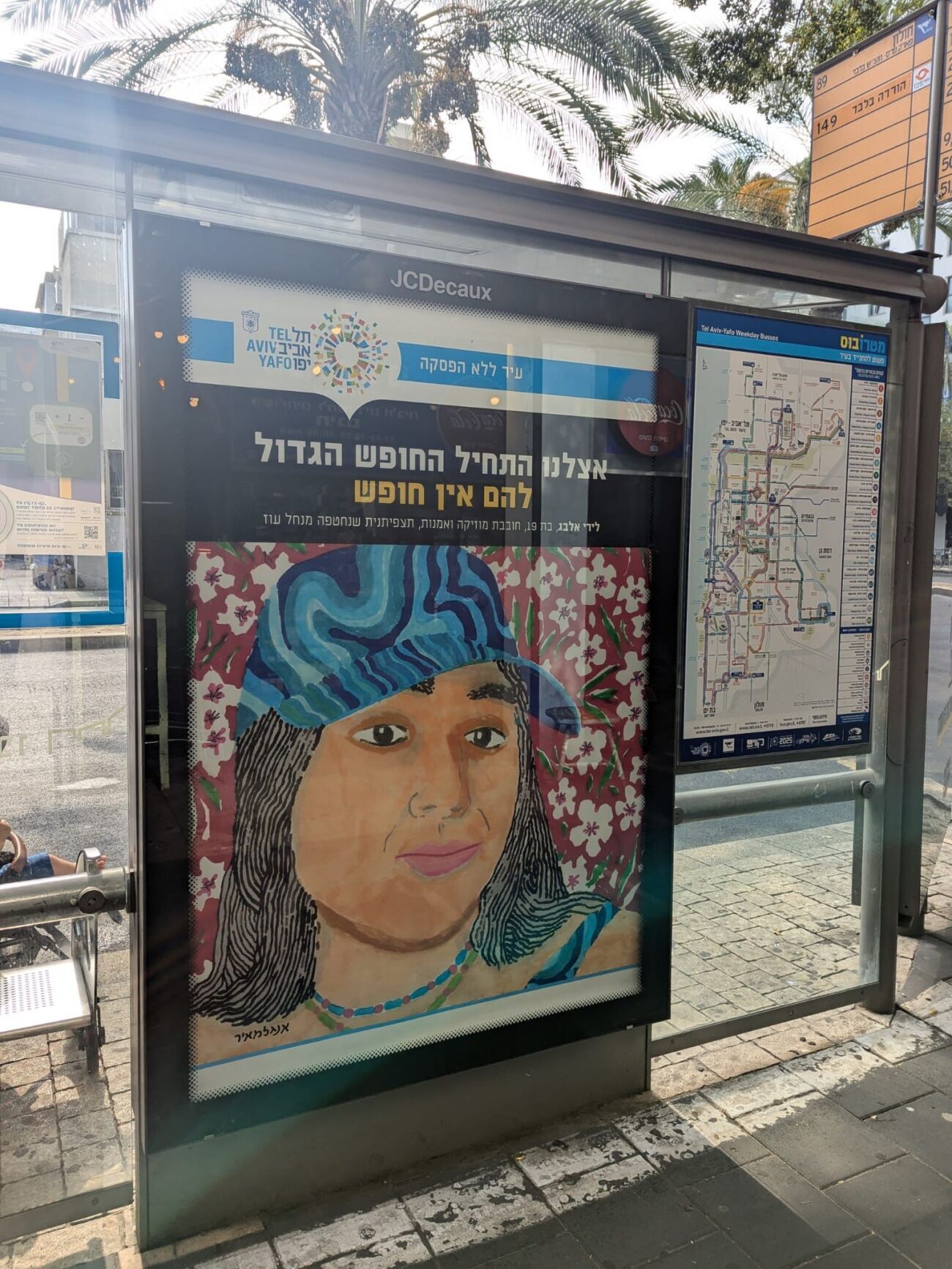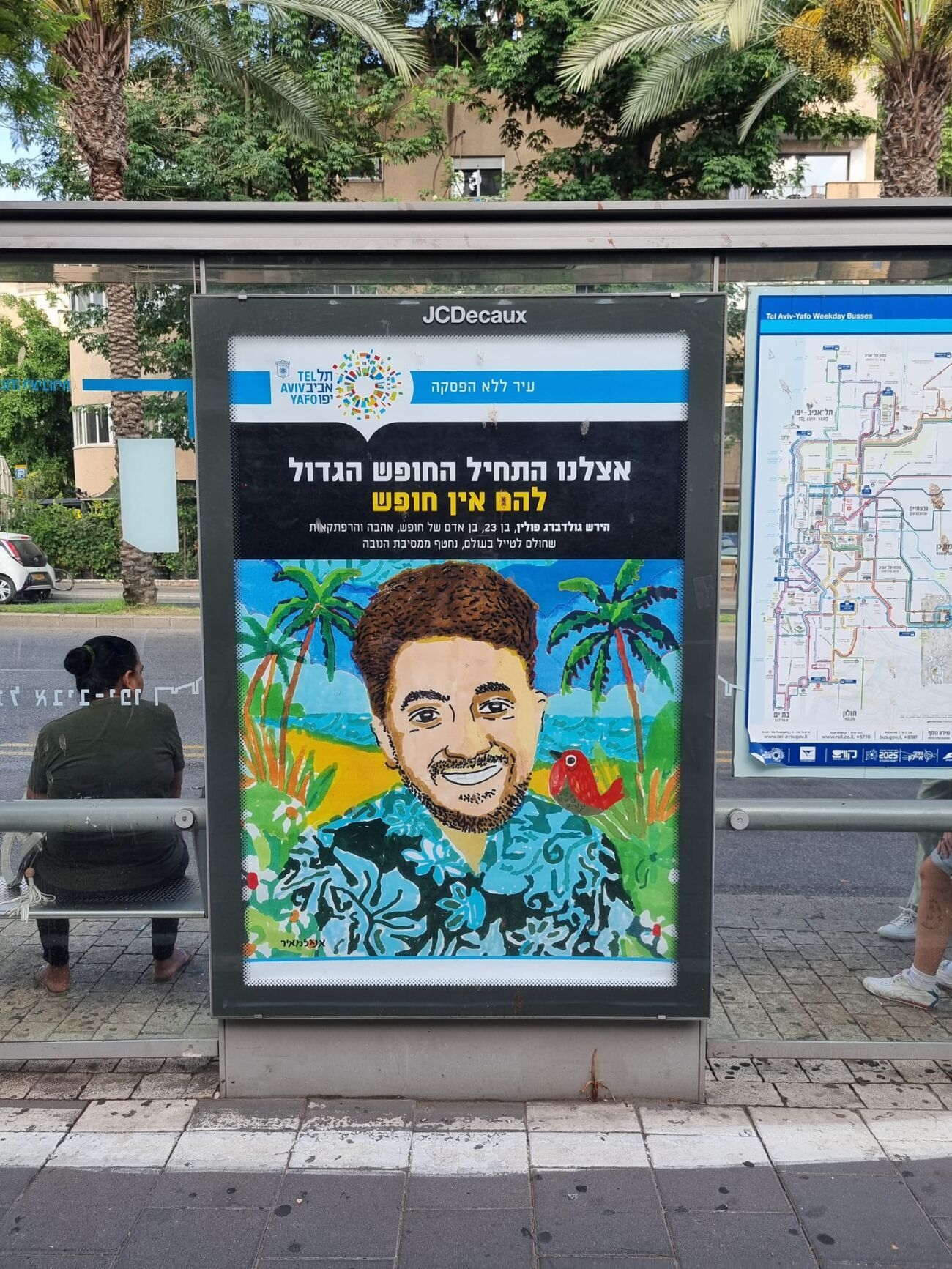 עיריית תל אביב-יפו תלתה הלילה (21.7) פלקטים ובהם איורי חטופים וחטופות בכ-200 תחנות אוטובוס ברחבי העיר תחת הכותרת "אצלנו התחיל החופש הגדול- להם אין חופש" ובמטרה לתמוך במשפחות החטופים והחטופות ולהשאירם בתודעה.