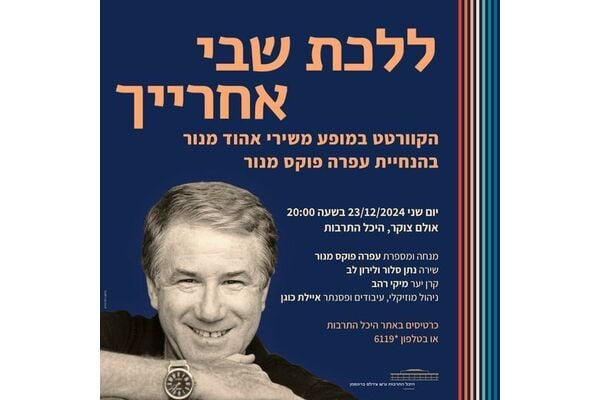 היכל התרבות תל אביב על שם צ'רלס ברונפמן מזמין את הציבור למופע מוזיקלי ייחודי בשם "ללכת שבי אחרייך", המוקדש לזכרו של אהוד מנור. המופע יתקיים ביום שני, ה-23 בדצמבר, באולם צוקר.