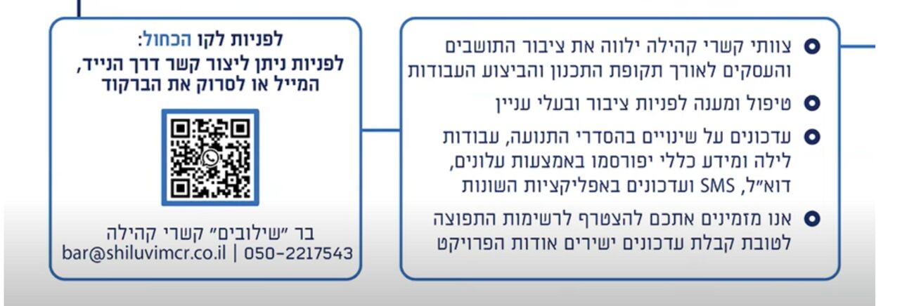 על כל שאלה ניתן לפנות לקשרי קהילה