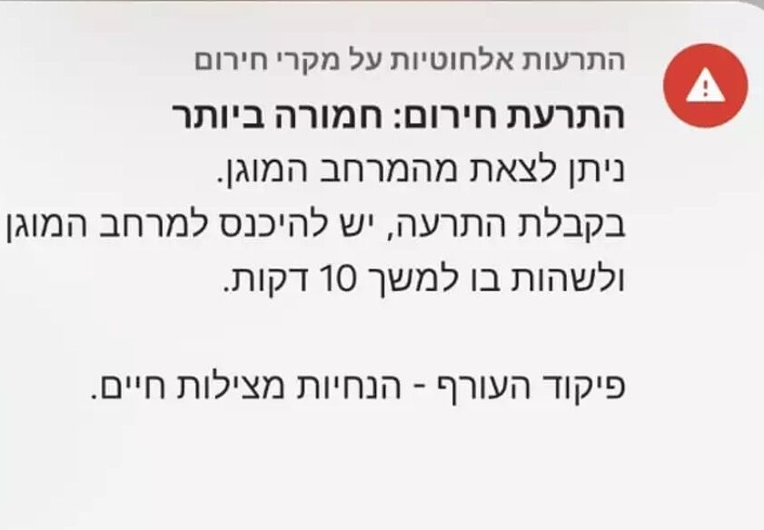 בקרוב נקבל התרעה על ירי טילים 10 דקות מראש? מערכת הביטחון בוחנת לשלב את המערכת "מסר אישי" שהופעלה בזמן מתקפת הטילים מאיראן בה קבלו תושבי ישראל הודעה בסלולארי בהתראה מוקדמת של מעל 10 דקות גם במקרה ירי טילים מתימן