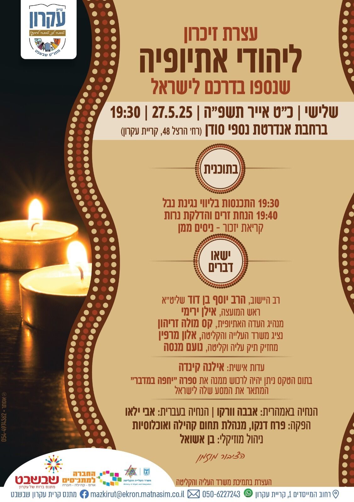 מתי? יום שלישי 27.5.25 בשעה 19:30 ליד האנדרטה לזכרם (צמוד לספריה הציבורית בקריית עקרון).