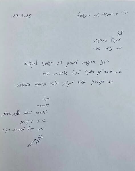 ראש המועצה, גבי גאון, הודיע על ההתפתחות לאחר פגישה שקיים עם רב קהילת חב"ד, אריה גרינברג, נציג הורים וחבר המועצה אהוד אביר לב. לדברי גאון, הרב גרינברג עדכן כי הוא מבקש למשוך את הבקשה מתוך כוונה לבחון חלופות נוספות למיקום בית הספר היסודי 'שלהבות חב"ד'. גאון הוסיף: "בימים של קיטוב גובר ובמיוחד היום, ראש חודש אב, חשוב שנפעל לקירוב לבבות והתחשבות בין כלל תושבי המושבה".
