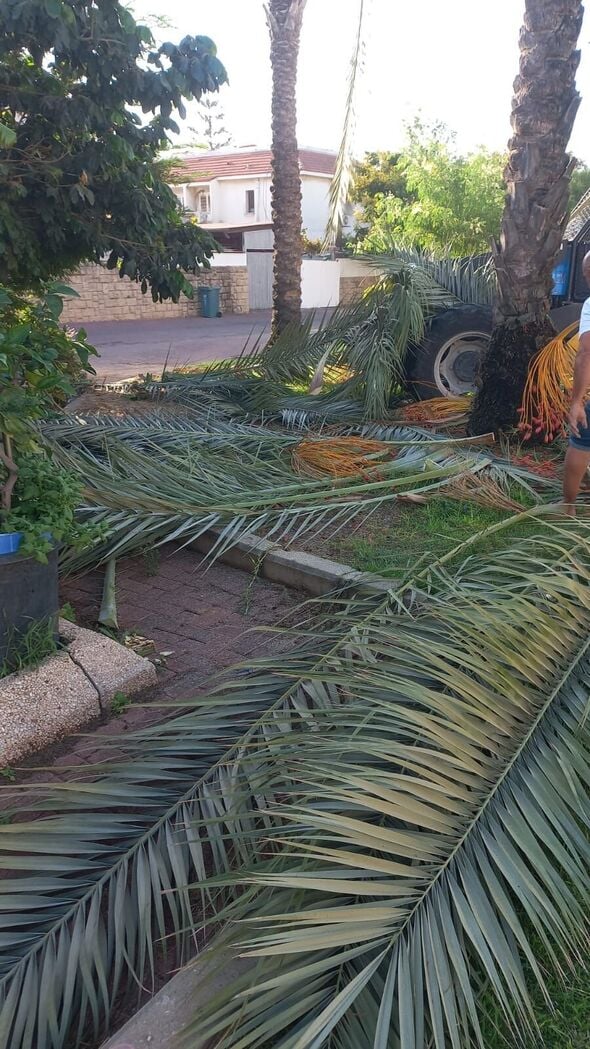 היום (ראשון 5.10) מועצת קריית עקרון החלה לגזום עצי דקל לחלוקת סכך לתושבים ברחוב שלוחות הלוטם