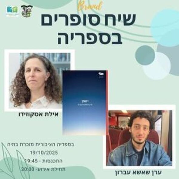 ביום ראשון 19.10 יתקיים בספריית מזכרת בתיה מפגש סופרים עם ערן שאשא עברון ואילת אסקוזידו
