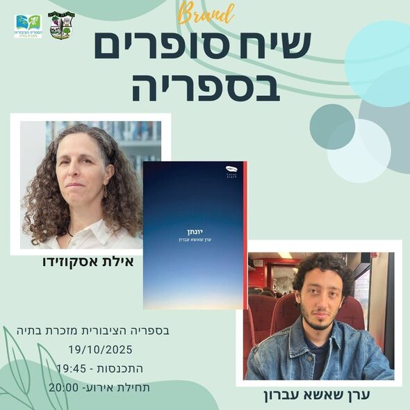 תזכורת! הערב (ראשון 19.10) יתקיים שיח סופרים עם ערן שאשא עברון ואילת אסקוזידו בספריית מזכרת בתיה