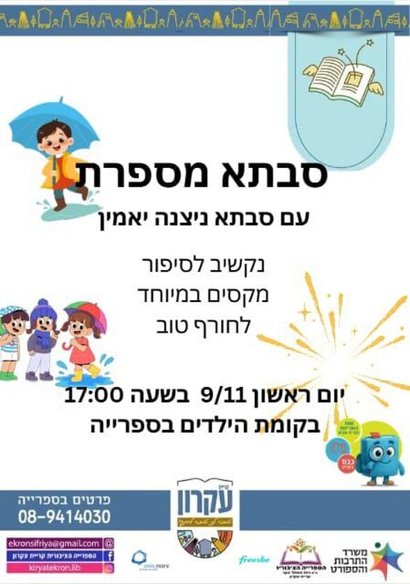 ביום ראשון 9.11 תתקיים שעת סיפור בספריית קריית עקרון