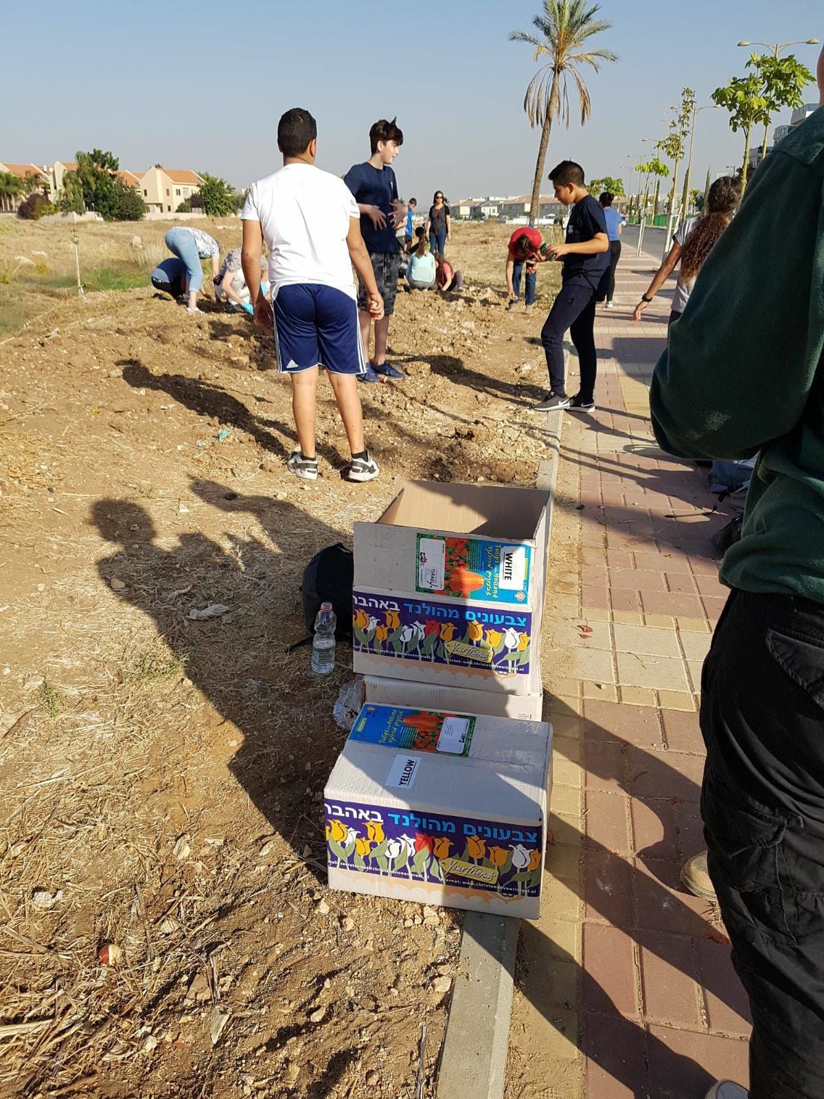 ילדי כיתה ז' מחט"ב רבין מזכרת בתיה שתלו פקעות פרחי טוליפ שנרמו על ידי תנועת C41 (נוצרים הולנדים למען ישראל), בסמוך לנחל עקרון