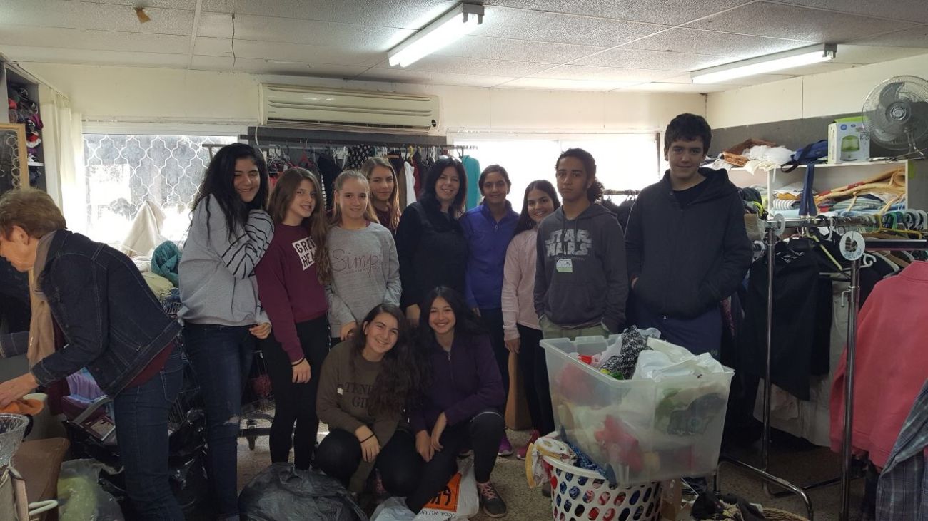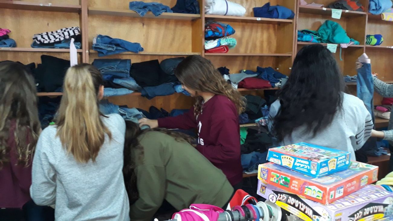 במעגל העולמי- עסקו התלמידים במיון בגדים בחנות יד-שנייה של רוטרי והכינו חבילות של בגדי חורף לילדים שיועברו לילדי פליטים על ידי עמותת אליפלט- עמותה הפועלת למען ילדי הפליטים .