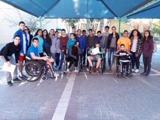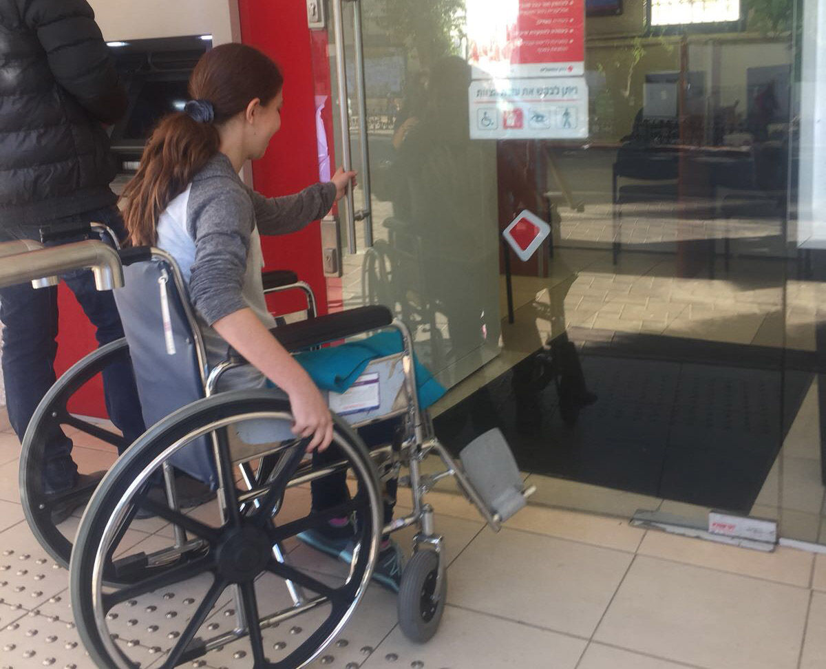 במעגל היישובי- יצאו התלמידים מצויידים בכיסאות גלגלים לפעילות של מיפוי מצב הנגישות במושבה.