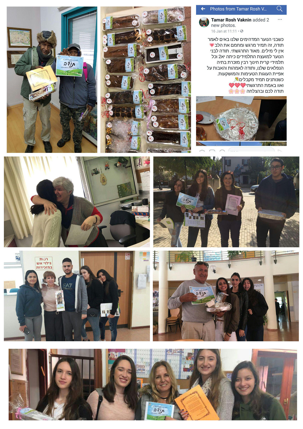 לפני קבלת התעודות יצאו אליהם כשהם מלווים בעוגות מעשה ידיהם וברכות אישיות והקדישו להם זמן ובעיקר אמרו תודה. הכרת הטוב היא אחד מערכי היסוד ביהדות ועל עשייה מבורכת זו אנו מודים ומוקירים.