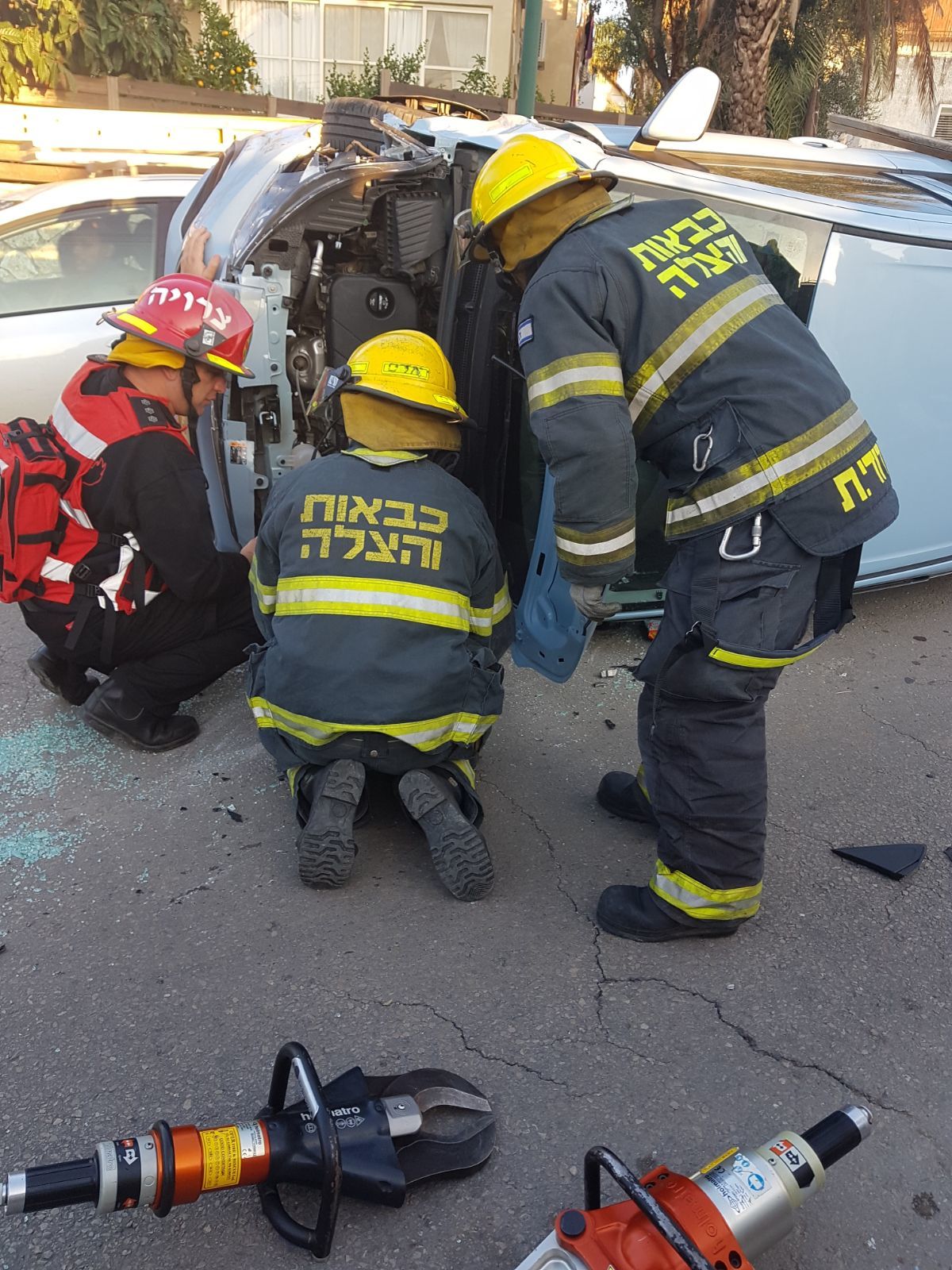 מבזק תאונה: רכב התהפך בקרית עקרון, לוחמי האש חלצו הפצוע