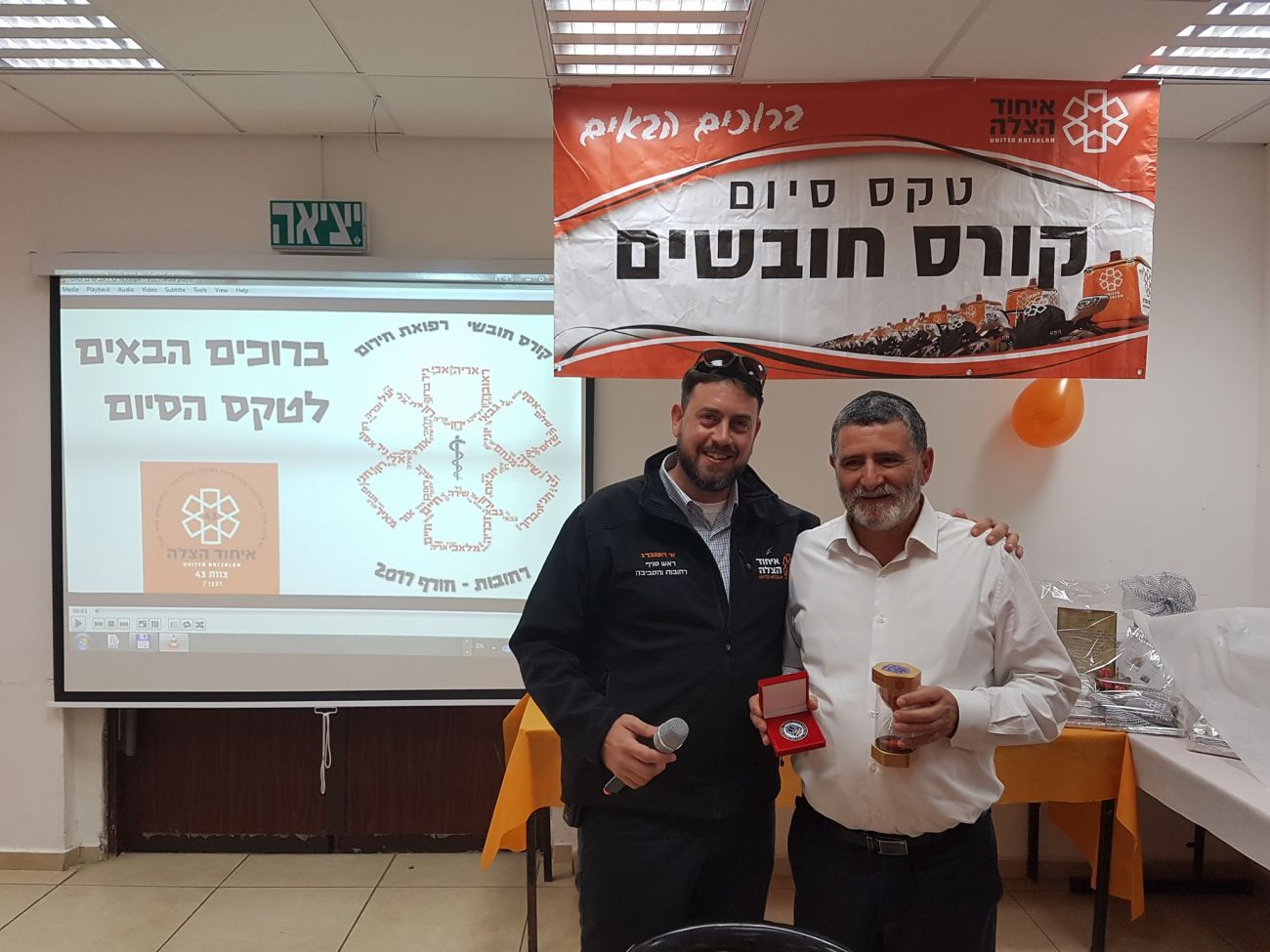 "אני נרגש היום מאוד, לראות עוד קבוצה של אנשים איכותיים שמסיימים קורס חובשי רפואת חירום כאן בסניף ויוצאים להציל חיים בהתנדבות.