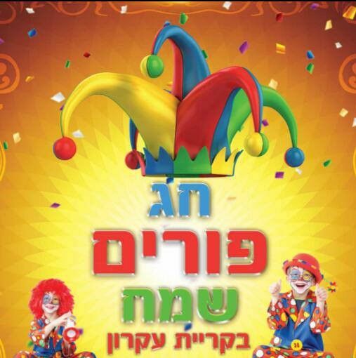 קריית עקרון צהלה ושמחה : לכבוד פורים יתקיימו מגוון פעילויות במושבה עם הופעות של אבי סינוואני, מוטי טקה והפנינג פורים לילדים