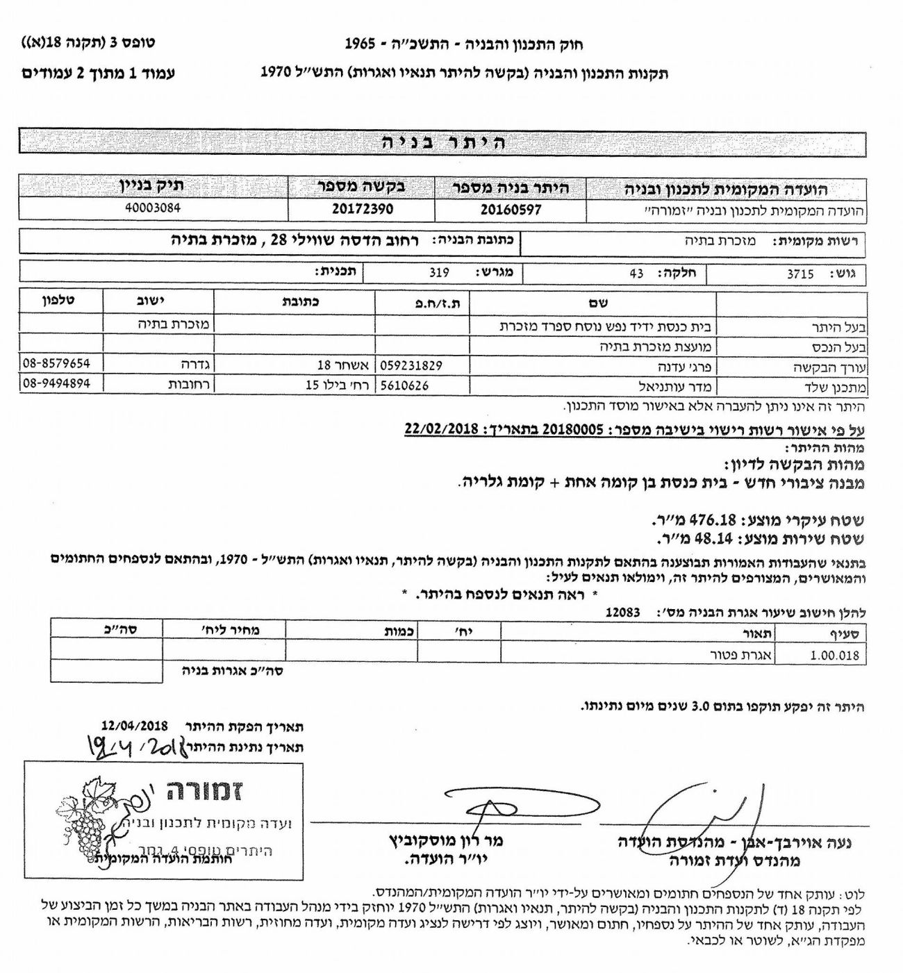 בקרוב יוקם בית הכנסת ראשון של שכונת בר לב במזכרת בתיה