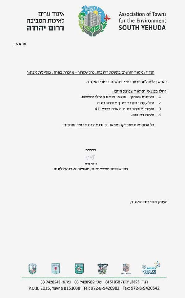 במועצה המקומית מזכרת בתיה התעוררה השבוע סערה בעקבות פרסום של המשרד להגנת הסביבה בדבר הימצאות של יתושי קדחת הנילוס בנחל עקרון. ברחבי הרשת החלו דיונים של התושבים על כך שהמועצה מסתירה מידע ואינה מיידעת אותם בזמן אמת על המתרחש.