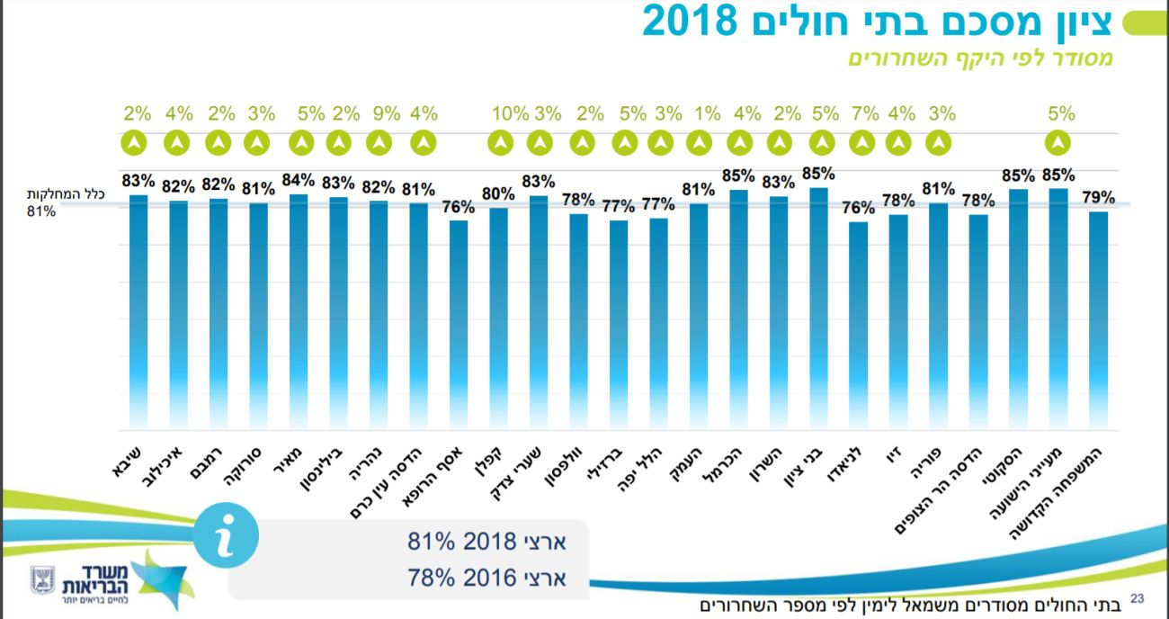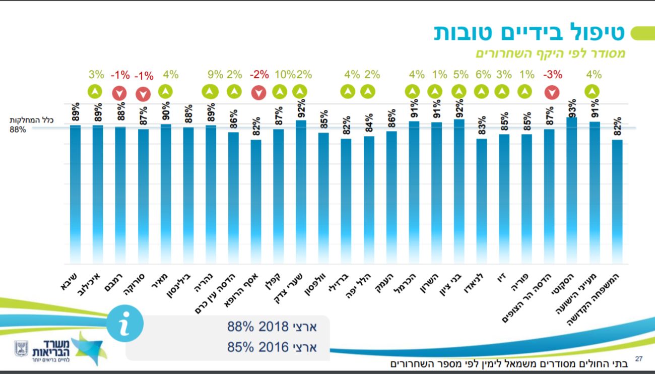 משרד הבריאות חושף את סקר חוויות המטופל בבית החולים בישראל שהתקיים בקיץ 2018. בסקר הטלפוני השתתפו מטופלים מעל גיל 18 שהיו מאושפזים בבית החולים לפחות 2 לילות. על פי נתוני הסקר חל שיפור בחוויות המטופלים במחלקות בתי החולים בארץ במדדים השונים הכוללים יחס הצוות הרפואי, השהייה במחלקות, אישפוז במסדרונות מתן הסברים, רצף טיפול ועוד. הסקר נעשה במחלקות בתי החולים השונות מלבד מיון, נשים, ילדים, מרפאות ואשפוז יום, פסיכיאטריה, טיפול נמרץ, שיקום ויולדות.