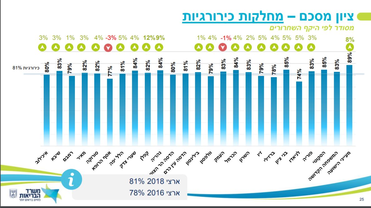 משרד הבריאות חושף את סקר חווית המטופלים שנערך בקיץ 2018 בו נבדקו שביעות הרצון של המאושפזים בבתי החולים בישראל מבחינת היחס של הצוות הרפואי, יחס והסבר על הטיפול שניתן לו, השהות במחלקות ועוד