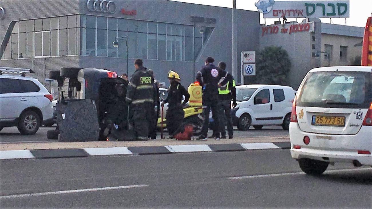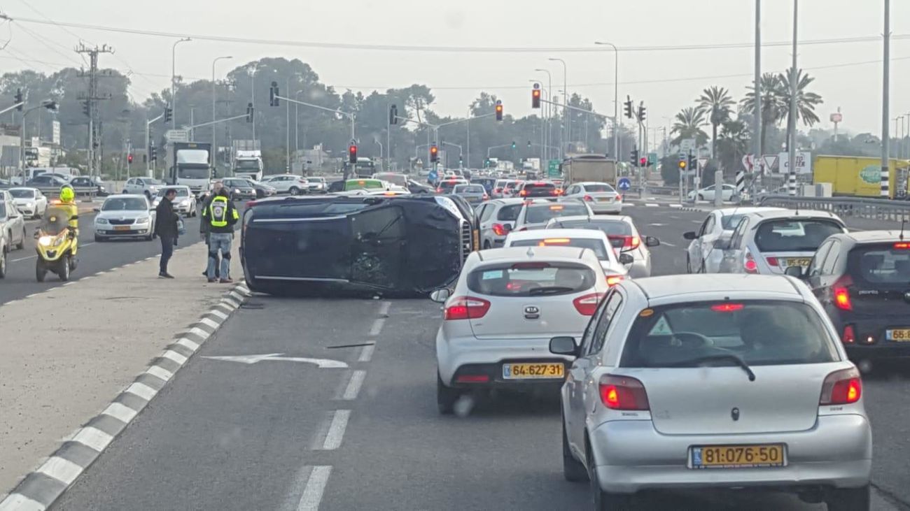 תאונה בצומת בילו: רכב התהפך מצורף סרטון