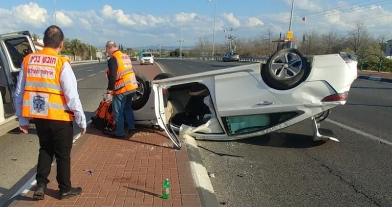 מבזק תאונה: רכב התהפך ליד בילו סנטר, 2 פצועים