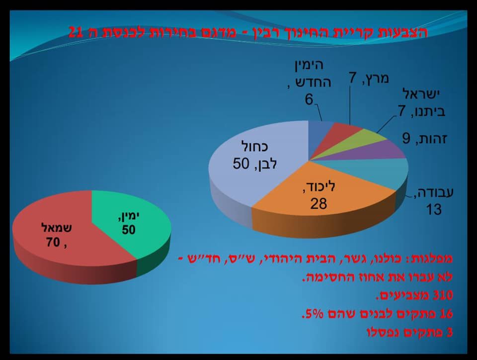 על פי מדגם תלמידי תיכון רבין במזכרת בתיה מפלגת כחול לבן בראשות גנץ-לפיד היא הזוכה בבחירות 2019