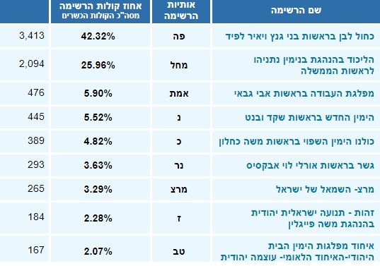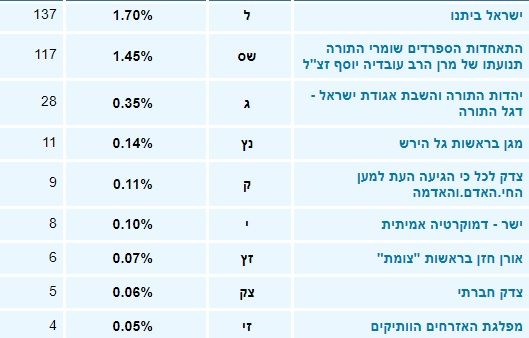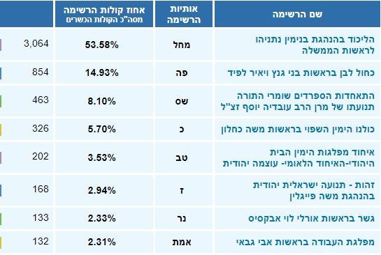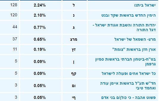 התוצאה עדיין לא סופית. ביום חמישי תסתיים ספירת המעטפות הכפולות (חיילים, שוטרים, חולים, חו"ל, עובדי קלפיות ועוד) הערכה של מעל 250 אלף קולות מכל הארץ. עם פרסום תוצאות המעטפות הכפולות נעדכן הידיעה