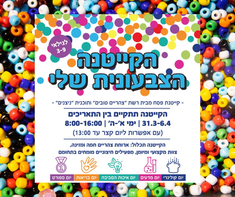 הקייטנה תתקיים בין התאריכים 31.3-6.4 לא כולל יום שישי.