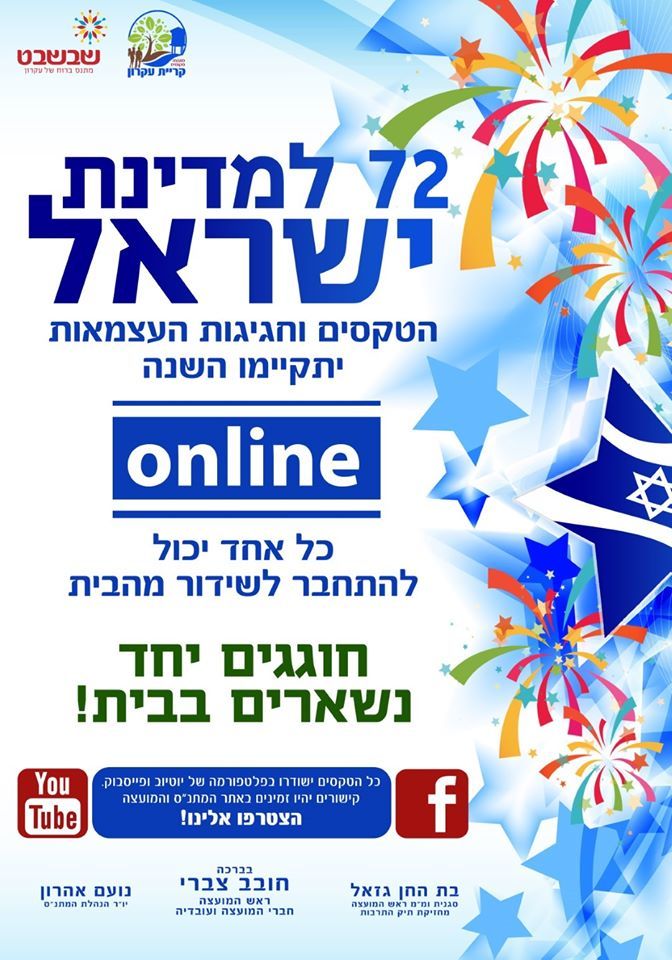 יום שלישי 28.4.20 טקס יום העצמאות בשעה 20:00 בו יתקיים טקס יקירי היישוב. התושבים מוזמנים לתלות את דגלי ישראל