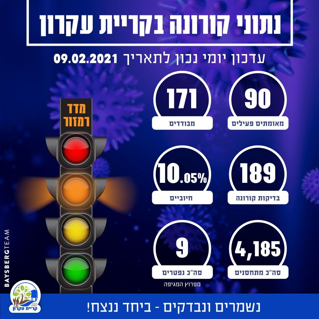 נתוני התחלואה בקריית עקרון