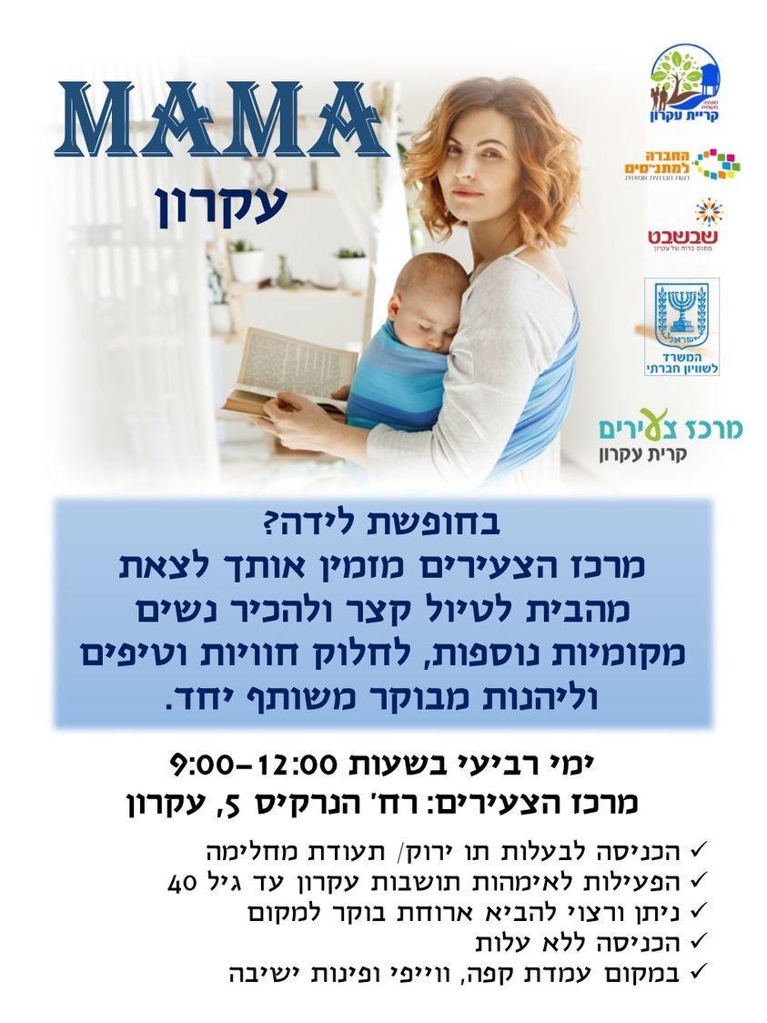נשים בחופשת לידה? מרכז הצעירים מזמין אימהות בקריית עקרון לפעילות "אימהות וקטנטנים" המתקיים מדי יום רביעי במרכז