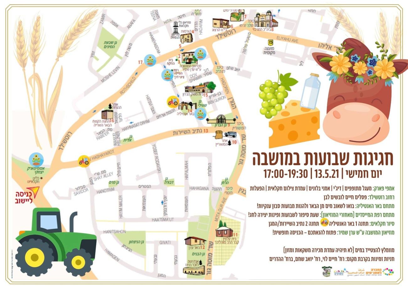 חגיגת שבועות במזכרת בתיה! ביום חמישי 13/5 תתקיים חגיגת שבועות ברחבי היישוב עם פסלים חיים, עמדות צילום, דוכני יצירה, סיור חקלאי על טרקטור ועוד