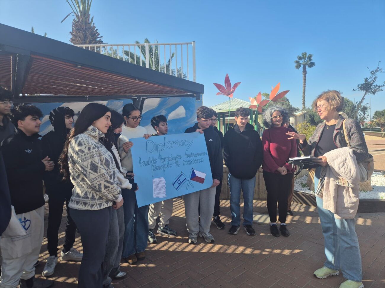תודות נמסרו לשרמיאן לזמי, רכזת מגמת דיפלומטיה, לרווית וגנר סומך, רכזת התוכנית בבית הספר, לרחל אלון מרגלית ולנציגות השגרירות הצ'כית. כמו כן, צוינו תלמידי כיתה י"ב שהתלוו לסיור: אימרי, ליאן, אנר וטל. הדיווח נכתב על ידי תלמידות כיתה י' במגמה: נעמי בן שמעון, כנרת רובינשטיין והילה סלע.