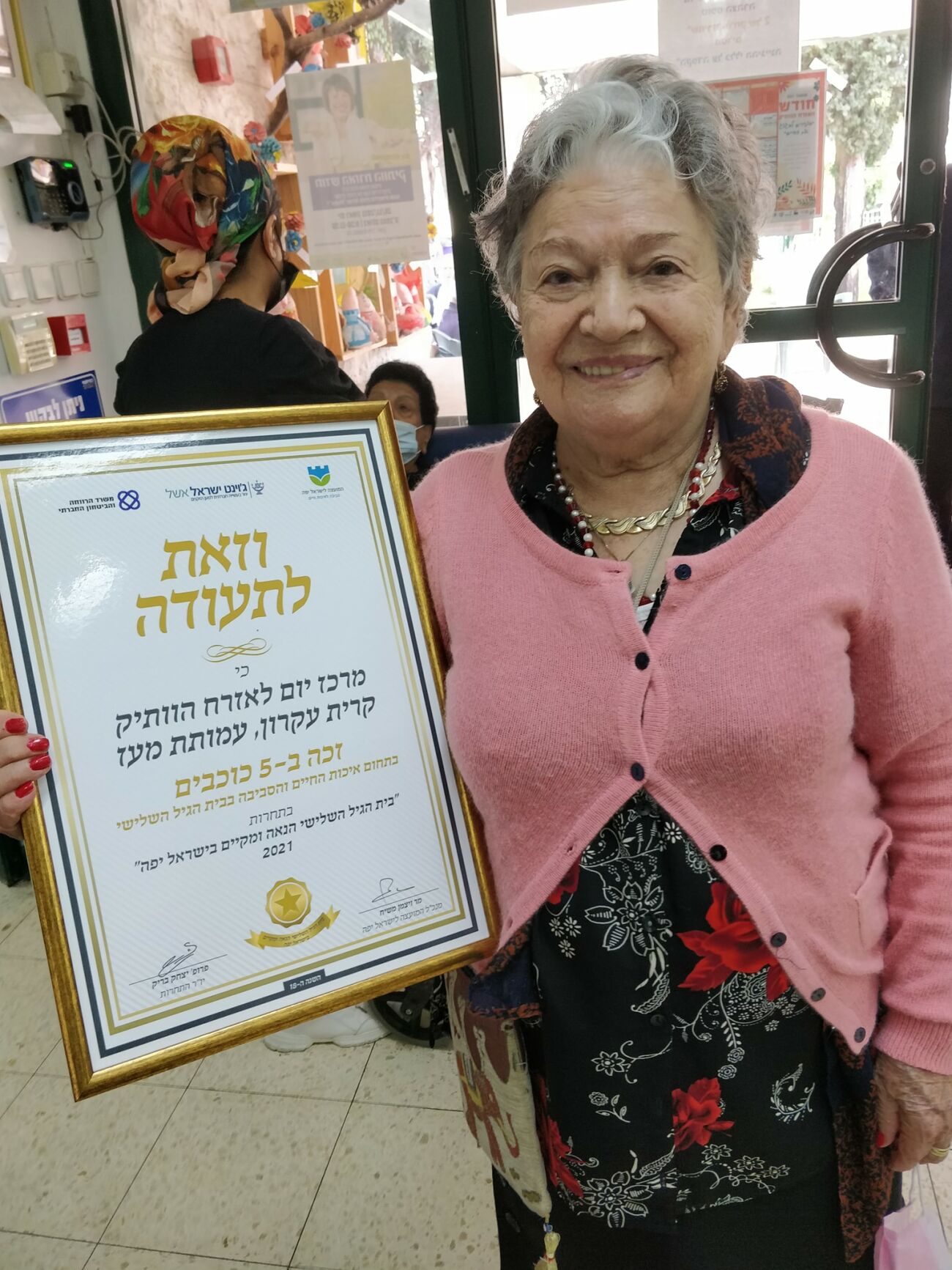מרכז יום לאזרח הוותיק מעז בקרית עקרון זכה בתחרות בית הגיל השלישי של המועצה לישראל יפה