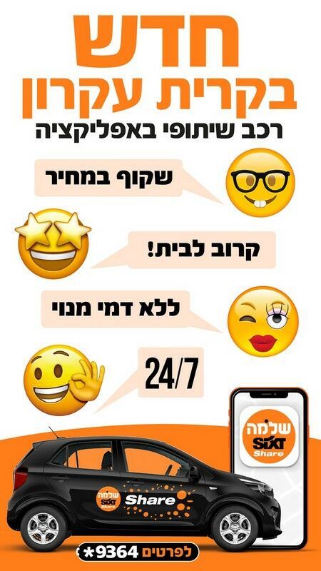 החל מחודש ינואר 2022 יחלו לפעול בקריית עקרון מיזמי הרכב השיתופי של חברות סיטי קאר ושלמה סיקסט share