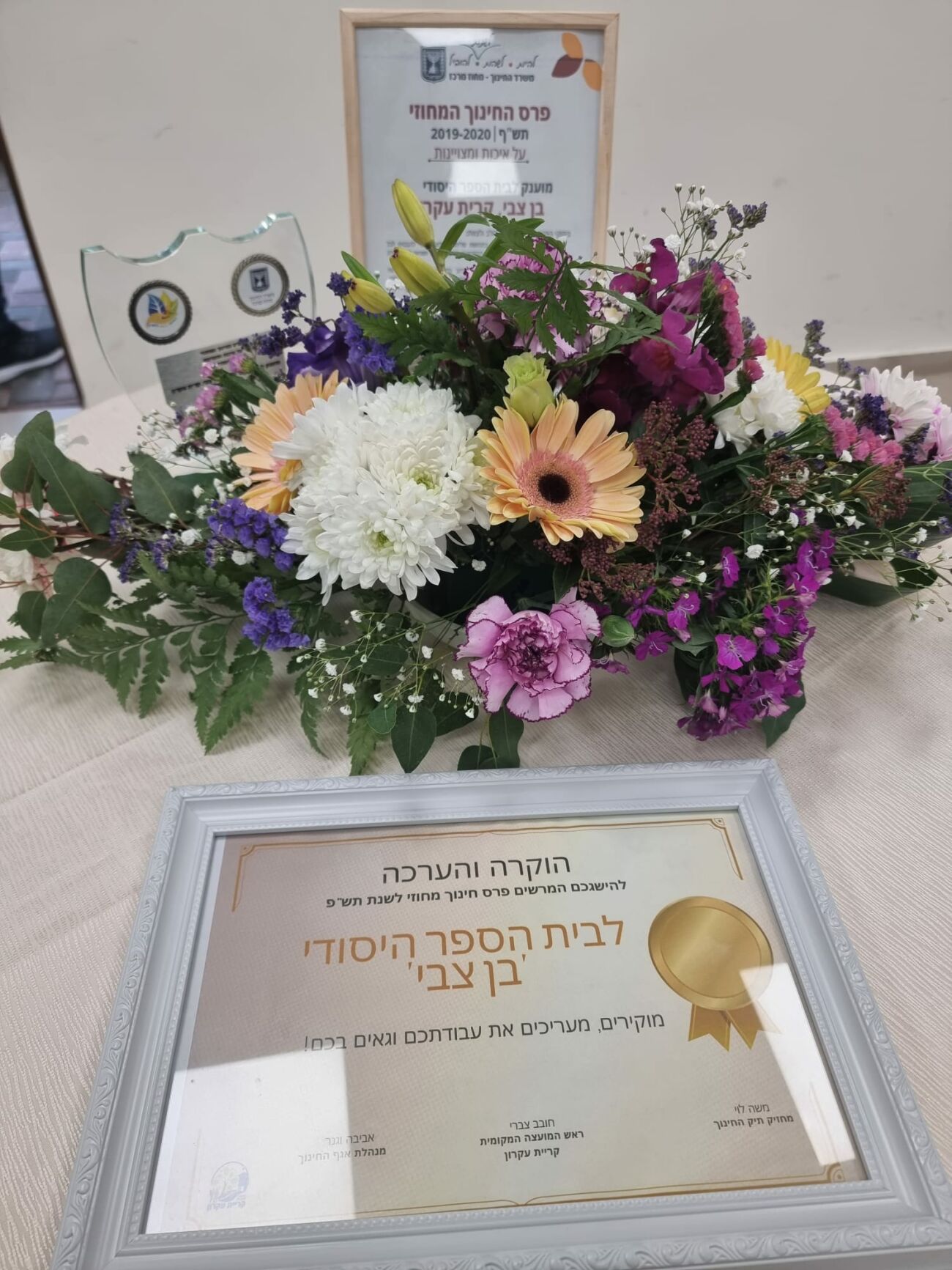 בעיכוב של שנתיים בשל הקורונה, הוענק היום ראשון 6.2 לביה"ס בן צבי בקריית עקרון פרס החינוך המחוזי לשנת תש"ף
