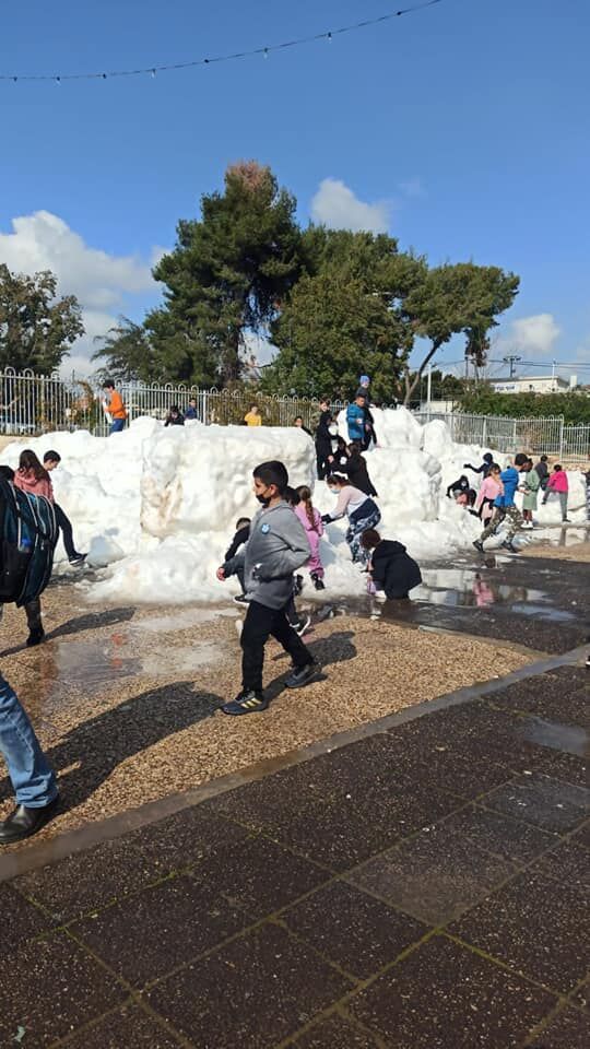 היום (שלישי 15.2) השלג הגיע לקריית עקרון להנאת הילדים והתושבים
