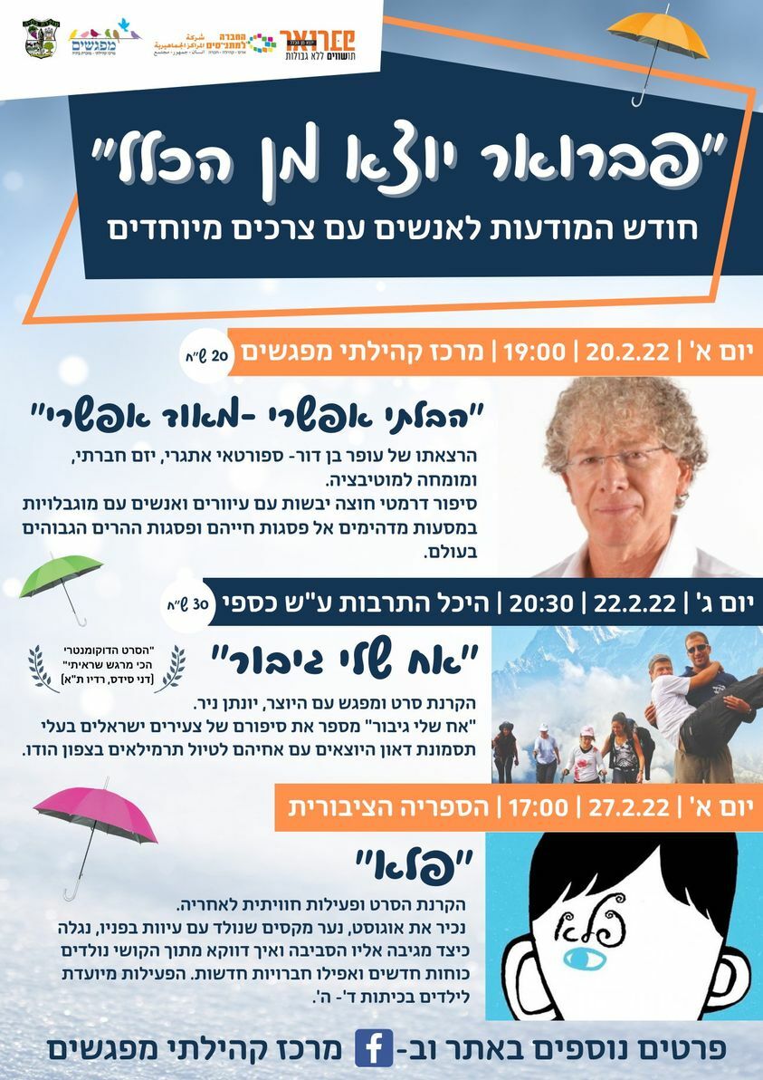 החל מיום ראשון 20.2 יפתחו במזכרת בתיה אירועי "פברואר יוצא מן הכלל" חודש המודעות לאנשים עם צרכים מיוחדים