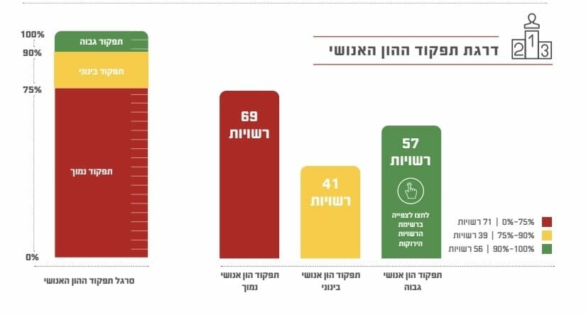 57 רשויות בישראל קבלו את הציון הגבוה בתפקוד ההון האנושי , 41 רשויות קבלו ציון בינוני ו69 רשויות קבלו ציון נמוך