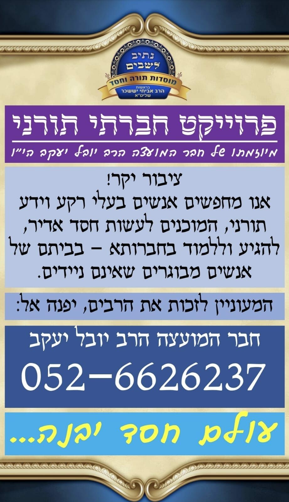 תושבים המעוניינים להצטרף למערך המתנדבים ניתן לפנות לרב, יובל יעקב בטלפון: 052-6626237